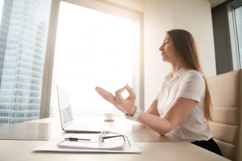 5) Медитация на работе. Да-да! Понятно, что, когда у вас дедлайны, бюджеты и отчёты — не до медитации. Поэтому нам не нужно много времени, достаточно сесть и на две-три минуты закрыть глаза. Погрузиться в наблюдение за дыханием, наблюдение за ощущениями в теле или даже за тем, как ваши стопы стоят на полу. Три минуты в тишине и ощущении своего тела — более чем достаточно.