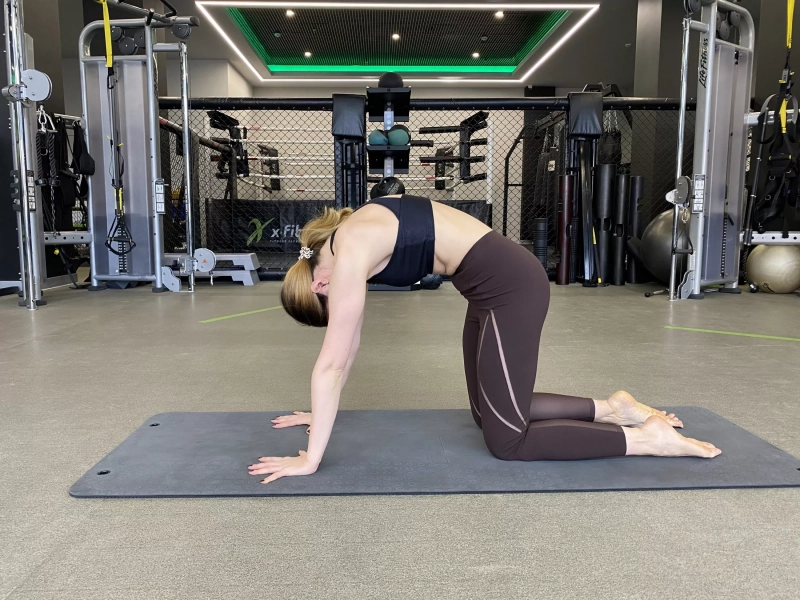 Начнём с того, что в принципе, чтобы поясница не испытывала дискомфорта, нужно движение. Но вопрос, какое движение?! И тут много логичных ответов: резкие скручивания нельзя, сильные прогибы тоже, глубокий наклон вниз с прямыми ногами тоже может неприятно отозваться в спине. Поэтому, во-первых, учимся двигаться правильно и осознанно! Во-вторых, боль в пояснице зачастую появляется из-за малоподвижных тазобедренных суставов или гиперкифоза грудного отдела (сутулости). То есть поясница принимает на себя ту работу/функцию, которую должна выполнять другая часть тела. А в-третьих, мы начнём с самых элементарных упражнений, учитывая то, что возможно уже есть сильный дискомфорт в поясничном отделе позвоночника.